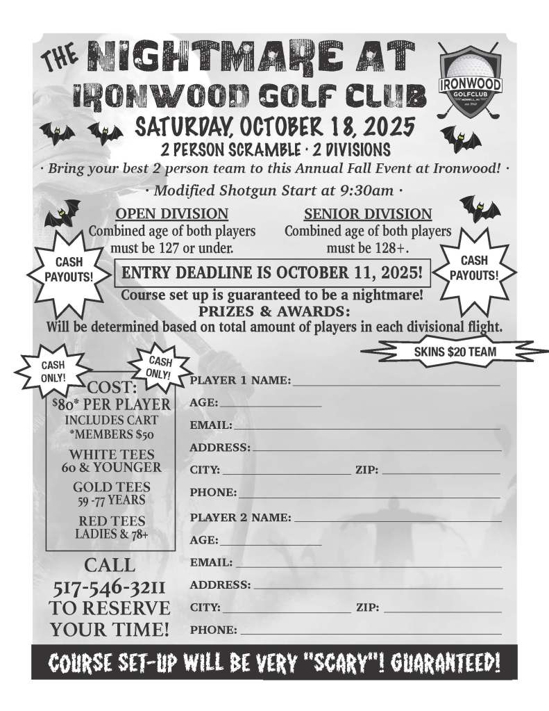 Welcome to the Ironwood Indoor Golf Simulators! We offer the areas newest state-of-the-art golf simulators featuring over 88 of the top courses in the world to enjoy all winter long! We will be hosting tournaments, leagues, private parties, special events and memberships. Email us at golfironwood@yahoo.com or call the clubhouse at 517.546.3211 for more information or to book a reservation. We also have a full bar and menu service while your enjoying the simulators. We are now accepting tee times daily, times fill up fast so call today. The simulators are also a great place to work on your swing during the off season and golf instruction is available. They are also great for getting feedback on your swing as they have all the state-of-the-art diagnostics similar to the launch monitors all the major club fitters use.